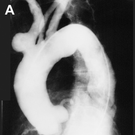 Image A shows an abnormality of the branches off the aorta: